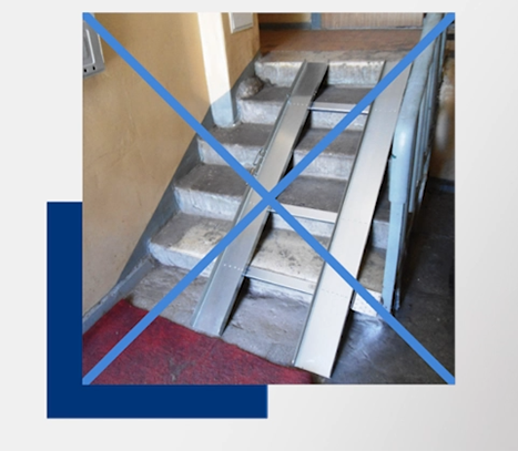 - Неправильно установленные пандусы, с нарушением уклона или без поручней;
