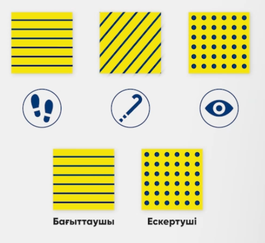 Обозначение доступности. Международные символы доступности (инвалидная коляска, ухо, глаз и другие) обязательно используются: на парковках, входах, санитарных комнатах, лифтах и других доступных элементах. Рядом должны быть указатели, направляющие человека к ближайшему доступному маршруту или объекту.